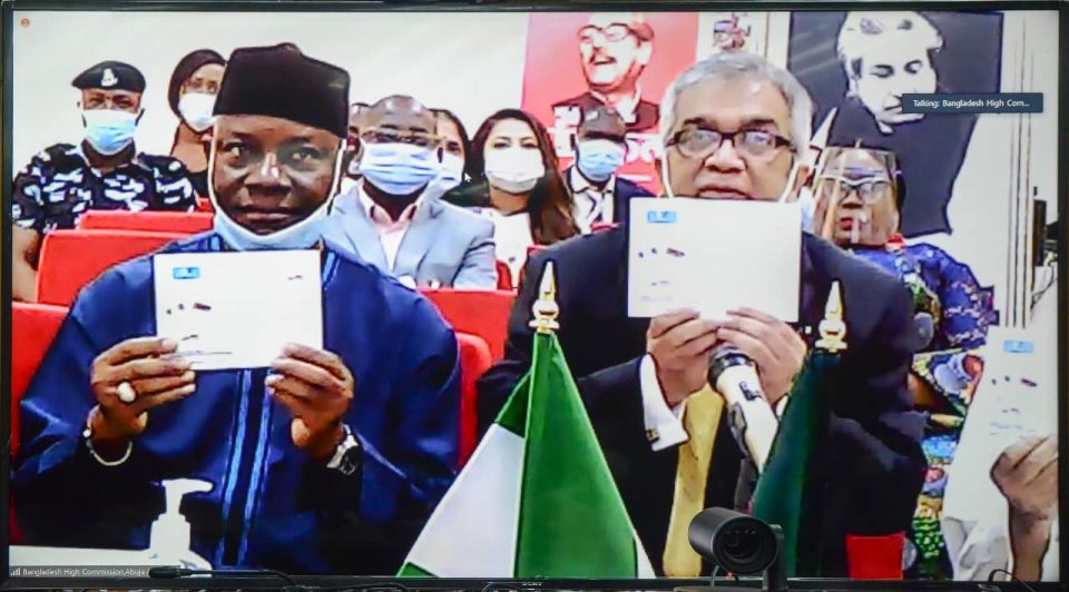 Bangladesh State minister for foreign affairs Md Shahriar Alam and foreign secretary Masud bin Momen also joined the programme virtually. Bangladesh high commissioner to Nigeria M Shameem Ahsan and Nigerian Postal Service director general Ismail Adebayo Adewusi along with Bangladeshi expatriates residing in Nigeria also joined the ceremony.