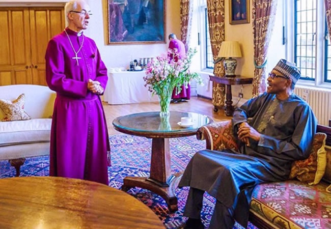 President Muhammadu Buhari met with the Archbishop of Canterbury, Most Revd Justin Welby, at the Lambeth Palace, London, on Sunday.