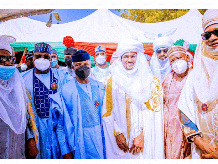 Vice President Yemi Osinbajo yesterday led top government officials to the turban ceremony of the son of President Muhammadu Buhari, Yusuf, as Taliban (District Head) of Daura in Katsina State.