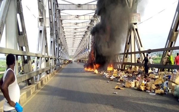 Vehicles plying the Onitsha Niger Bridge in Anambra State should take extra cautions as fire has gutted a vehicle conveying goods on the bridgehead.
