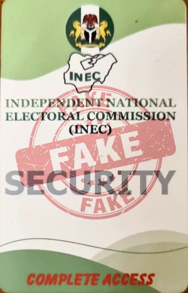 The Independent National Electoral Commission (INEC) has raised an alarm over fake identity cards for security personnel on election duty.