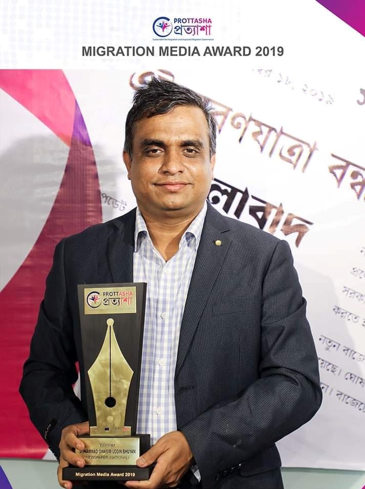 Ok Senior Journalist Md Owasim Uddin Bhuyan has received the first prize of the prestigious Migration Media Award in Bangladesh consecutively for the last two years under the national newspaper category in the country.