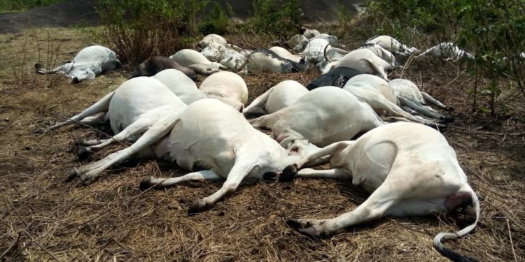 His words”We were there this morning and we saw about 36 cows dead apart from the one inside the bush. It has happened and there is nothing we can do, we regards it as the act of God which nobody can be query.